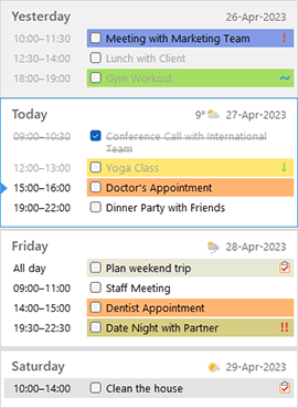 Preview upcoming appointments categorized by different categories, such as work, personal, or family, and stay organized with a clear overview of your schedule for the next few days.